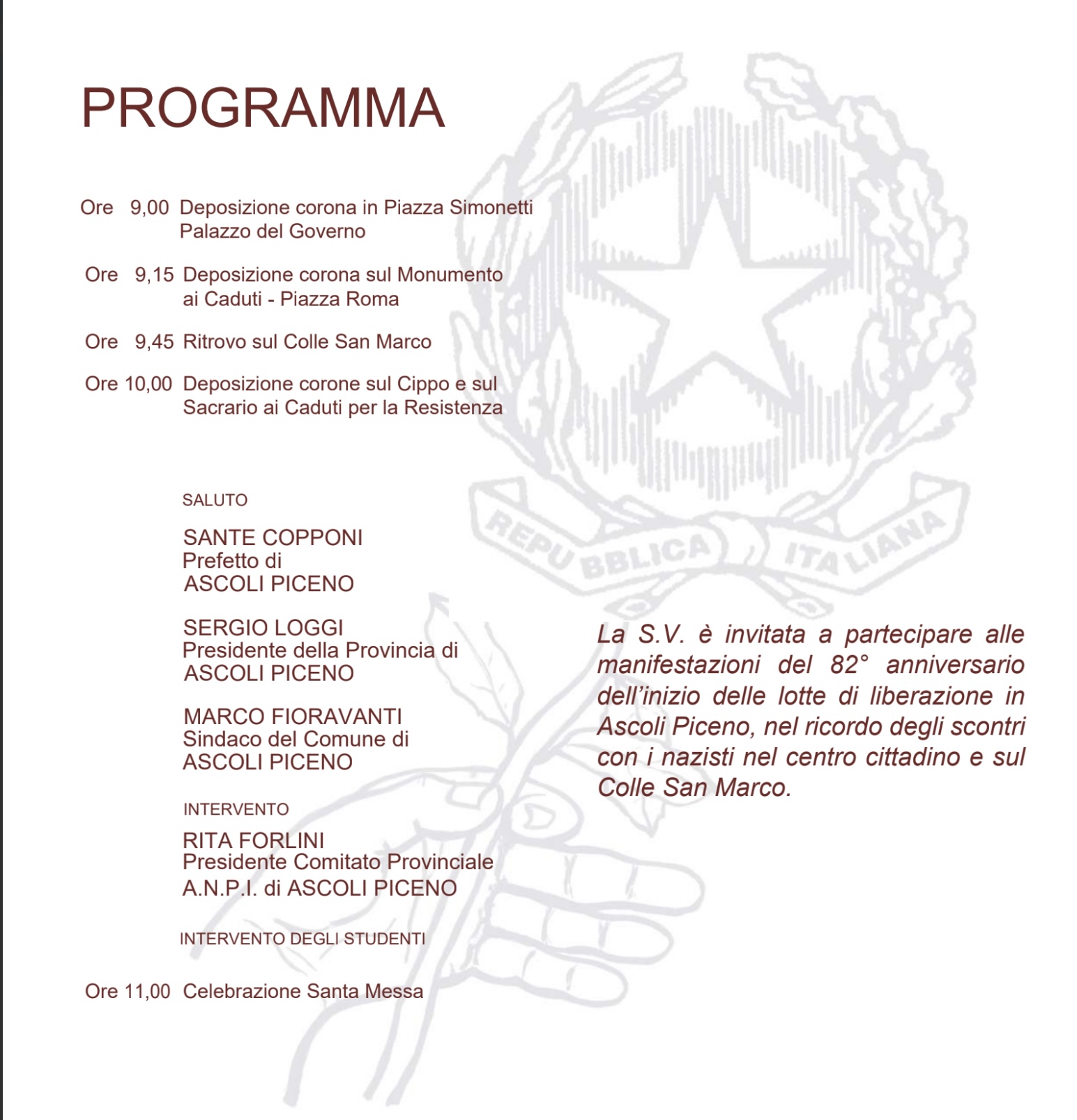 La cittadinanza è invitata a partecipare alla cerimonia per rendere omaggio a quanti, con il loro sacrificio, hanno consegnato alle generazioni future un’Italia libera e democratica.
