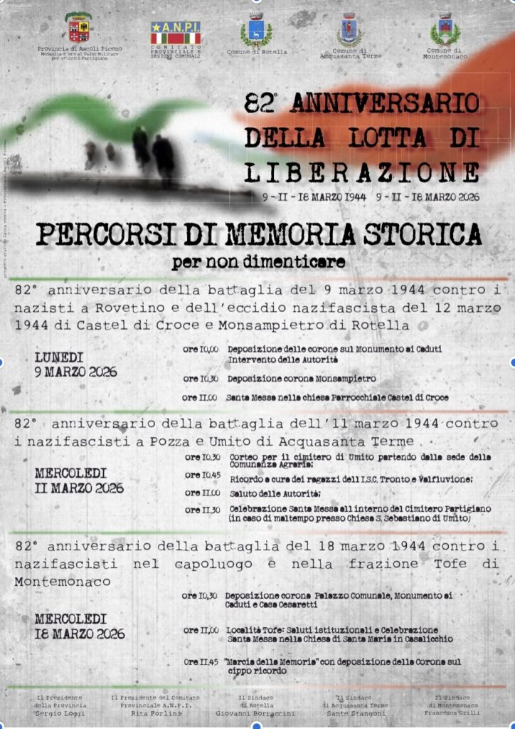 Segnaliamo le prossime celebrazioni partigiane sui monti del territorio Piceno che videro, nel ‘44, le feroci repressioni nei nazifascisti.